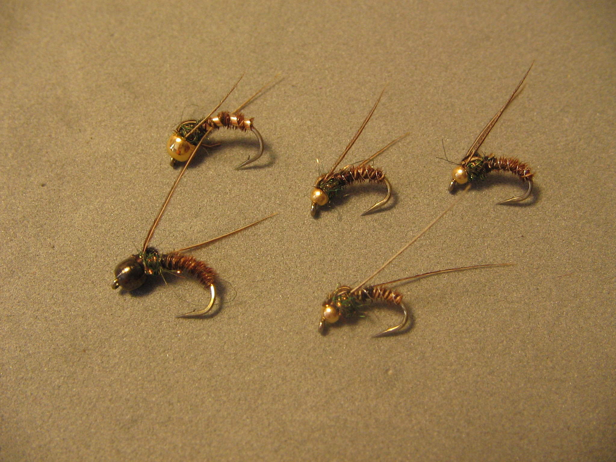 Vad gäller puppor och nymfer tror jag dom gör sig bättre utan guldhuvudet, känns lite som att dom får dubbla huvuden... Får göra lite tester med tungstensgummi och se hur det blir...