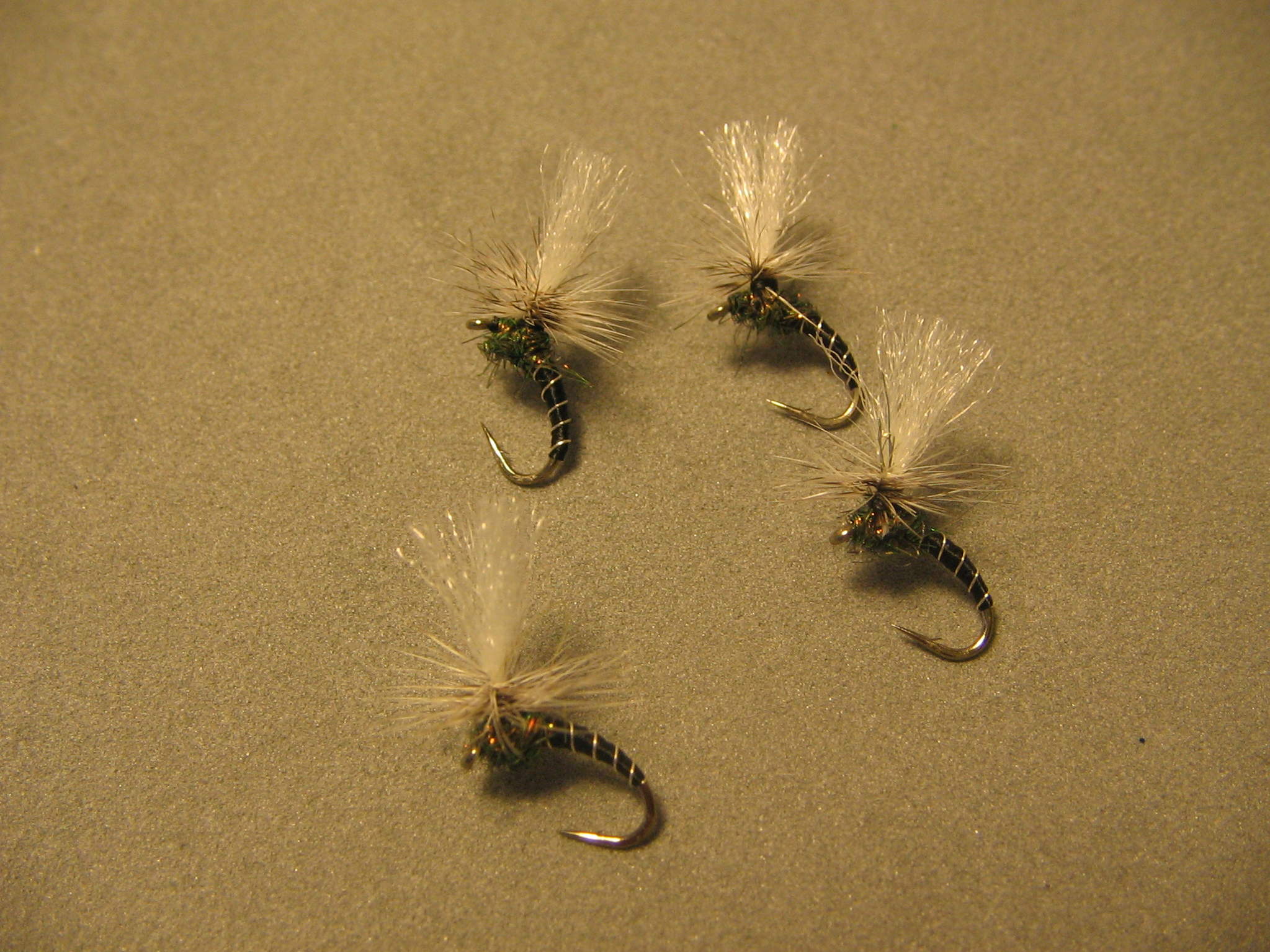 Pyttenymfer (för mig alltså) inspirerade av senaste fly&tie. Svart tråd, silvertinsel, påfågeldubbing, hönshackel till stjärt. Bundna på Kamasan B160 #16, dvs krokböj #16, skaft #18.